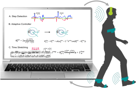 Gait improvement in PD with interactive rhythmic auditory synchronization
